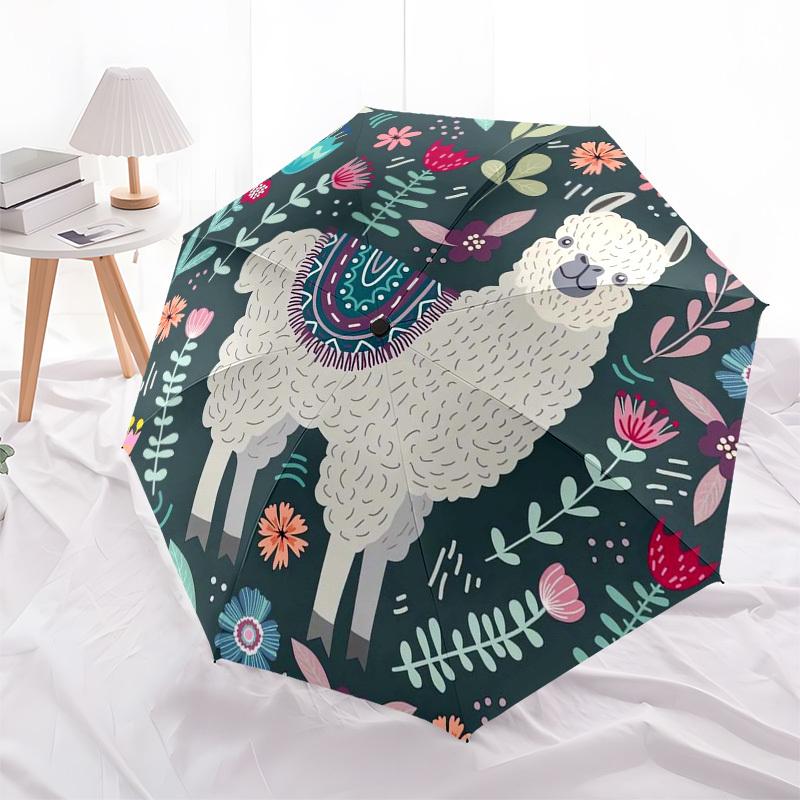 1pc Llama Floral Pattern Illustration Umbrella with Plastic Handle,Suitable for All Seasons Umbrellaptys26032