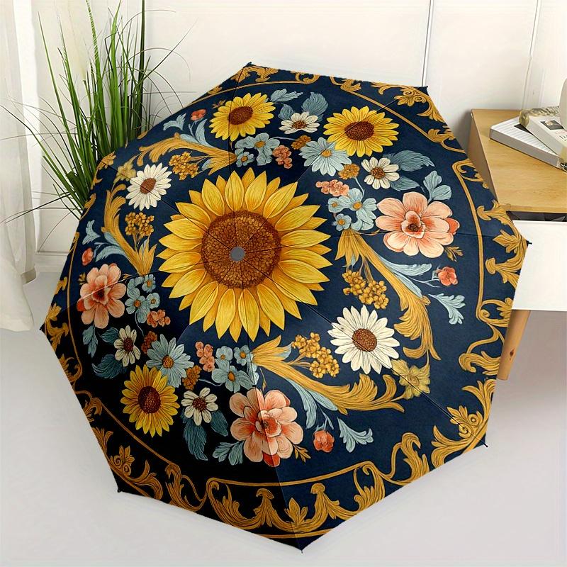 Sunflower Garden Umbrella, Portable 3-Fold Compact Umbrella,Christmas Gift ES366