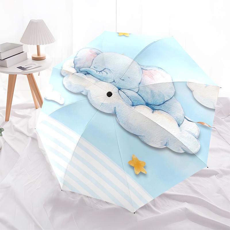 1pc Sleeping Elephant in the Clouds Umbrella with Plastic Handle,Suitable for All Seasons UmbrellaPT452