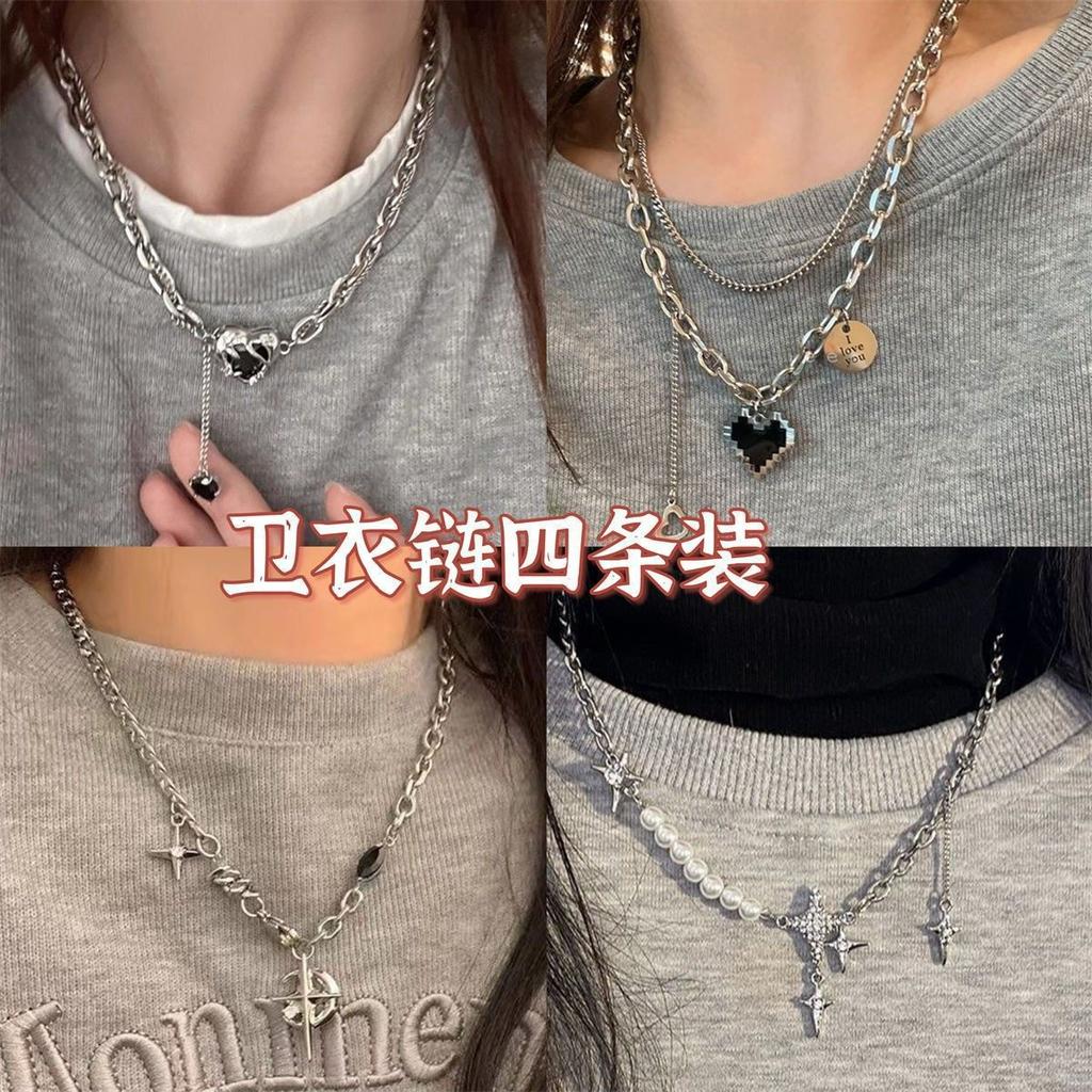 Sweet and cool lava love necklace women's tide niche high-end design sense sweater chain versatile personality sweater chain men