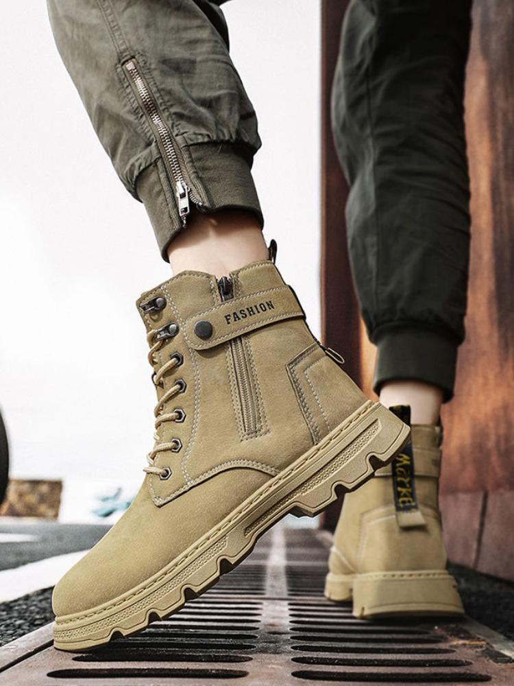 Thickened Fleece Lined Men's Winter Warm Cotton Padded Snow Boots Work Safety Motorcycle Workwear Leather Waterproof Lace Up