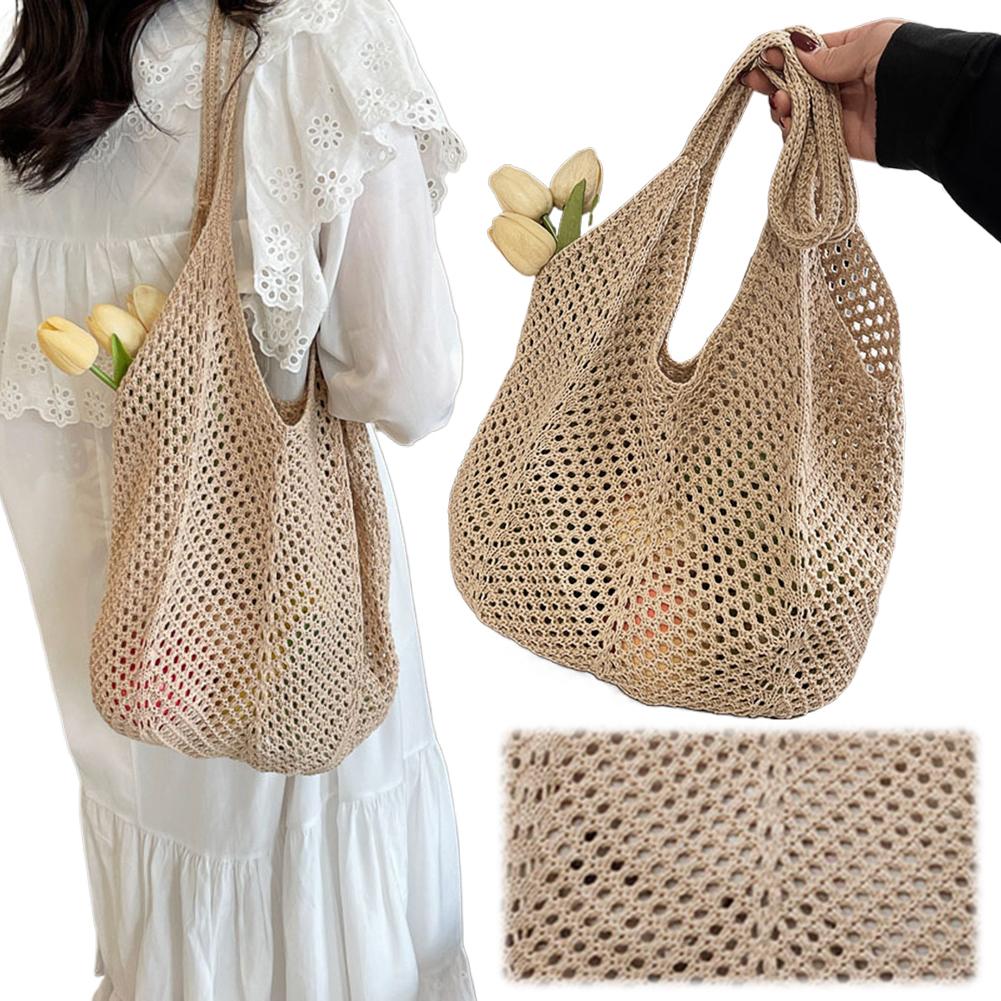 Women Knitting Shoulder Bag Solid Color Aesthetic Hobo Bag Large Capacity Knitted Tote Handbag Ladies Daily Handbag