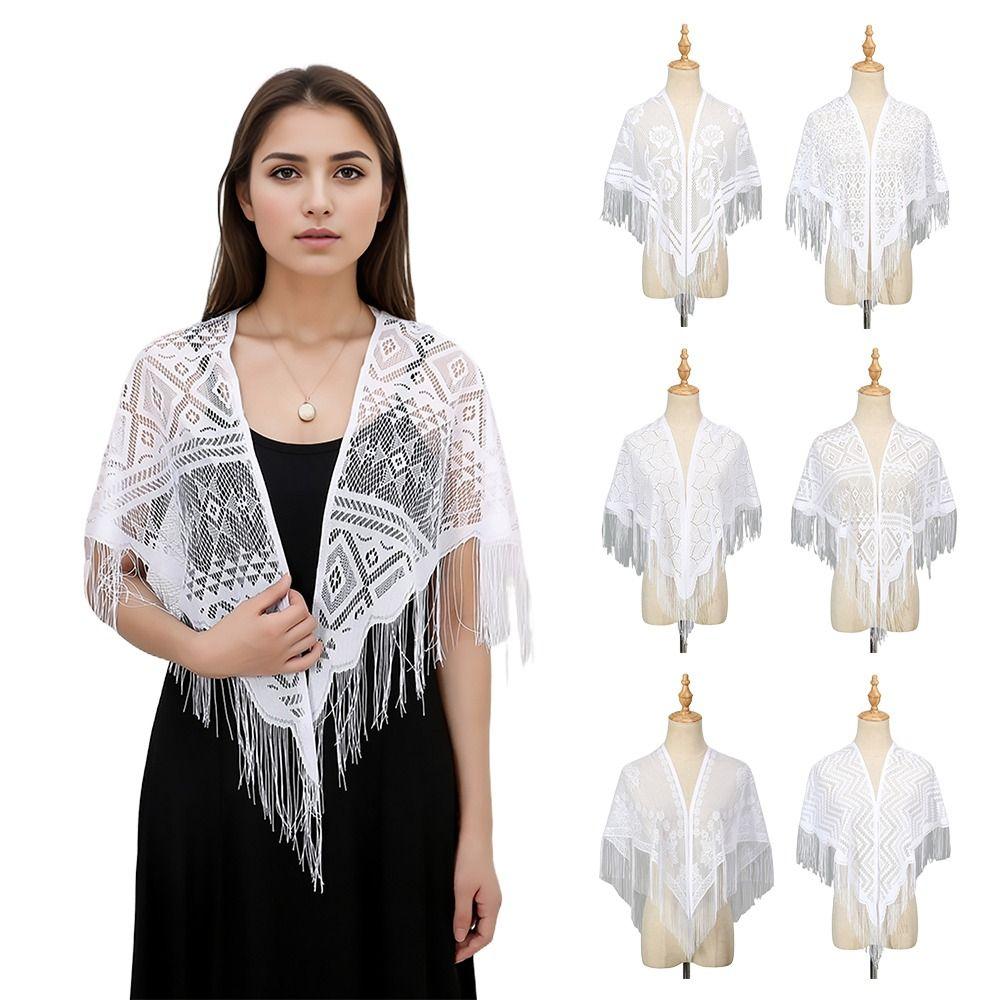 Hollow Women Shawl With Tassel Wedding Bridal Shawl Fashion Scarf Evening Prom Cape for Party