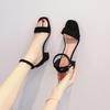 2026 New Summer One Word Buckled Open toed Low heeled Sandals for Women Suede High Heels