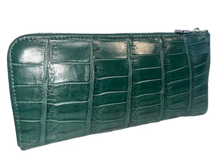 GUODI Genuine Crocodile Leather Matte Crocodile Long Wallet with L-Shaped Zipper, for Men and Women, W169L (Cyprus Green)