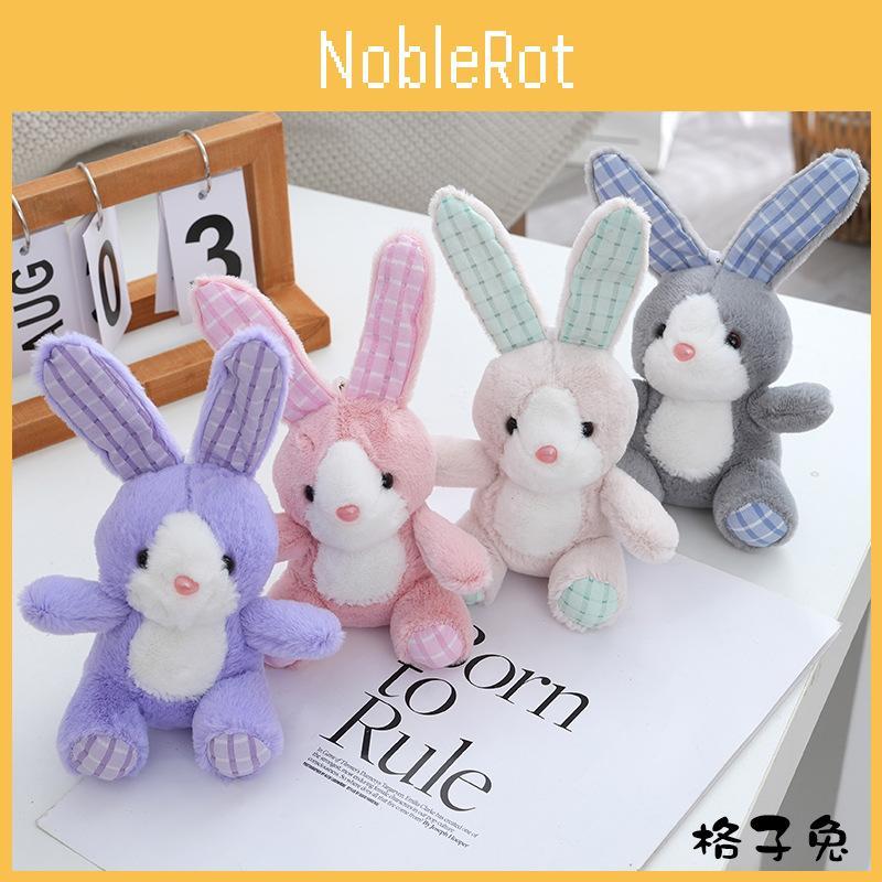 Adorable Checkered Long-eared Bunny Plush Toy Soft Stuffed Rabbit Doll For Kids