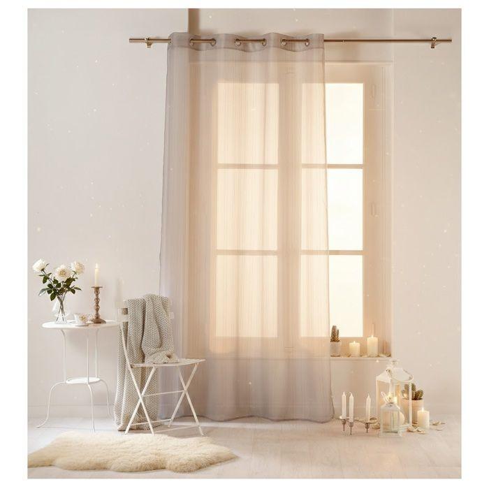 Voilage - EDEN - Collection Horizon - 140 x 260 cm - Rayé gris - 8 œillets métal Ø4 cm