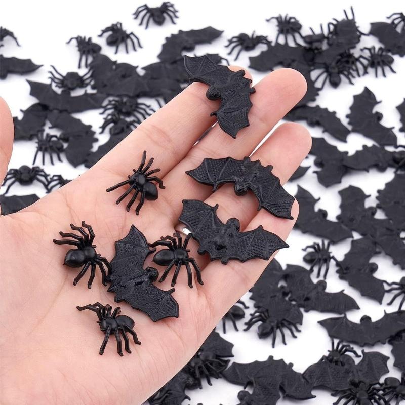 Elevates your Halloween ambiances with these intricately crafted plastic bats and spiders featuring realistic detail and bright colors, perfect for instantly transforming any space into a scary haunting house.