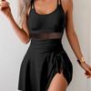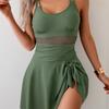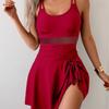 Mesh Pleated Monokini Women Holiday One Piece Swimsuit Solid Swimwear Beach Dress Female Bathing Swimming Bodysuit Summer