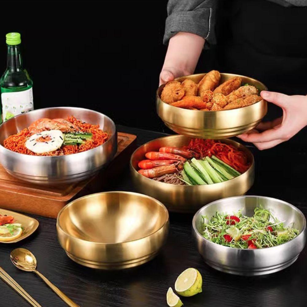 Large Capacity Cold Noodles Bowl Double Layer Soup Bowls Korean Stainless Steel Bowl Roast
