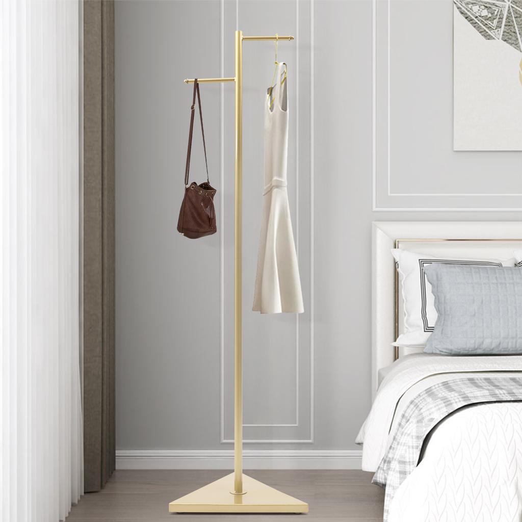 Elegant Gold Coat Rack with Sturdy Triangle Base, Space-Saving Standing Garment Hanger, 61/66.9 Inch Height, 17.7 Inch Wide Base
