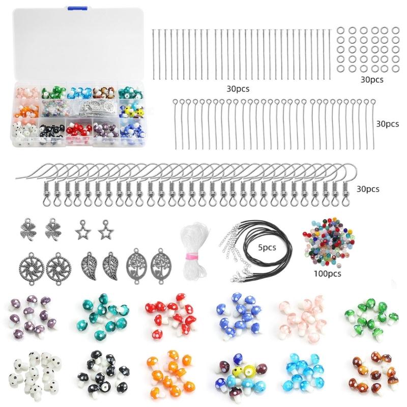 Mushroom Beads Kit--You can get a Jewelry Making Supplies Contains 1 box of 120 pcs Colorful Mushroom Beads,100 pcs Spacer Beads,30pcs Jump Rings,30 pcs earrings hooks,30pcs for T headpins, 30 pcs headpins,10 Charms,1pc String,5pcs black necklace string.Meet your DIY Jewelry Crafting Needs, also, You can be a Jewelry designer for yourself or others.