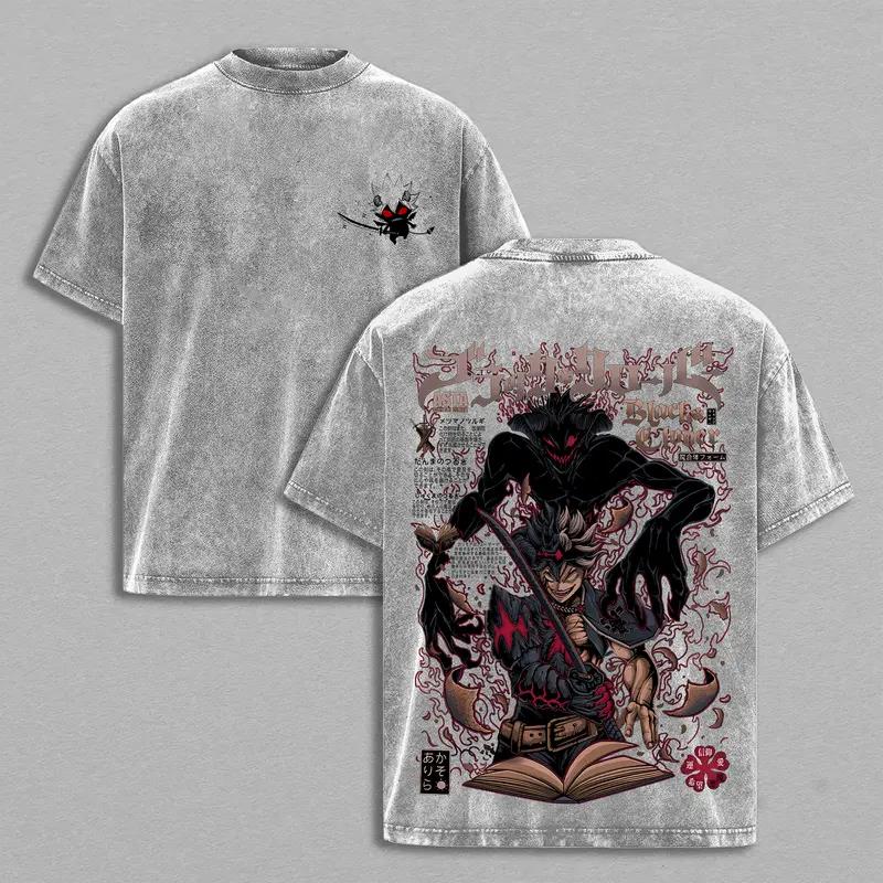 Asta Black Clover T-shirt for Men Women Clothing Manga Graphic Short Sleeve Tees Tops Vintage Washed Oversized Cotton T Shirt