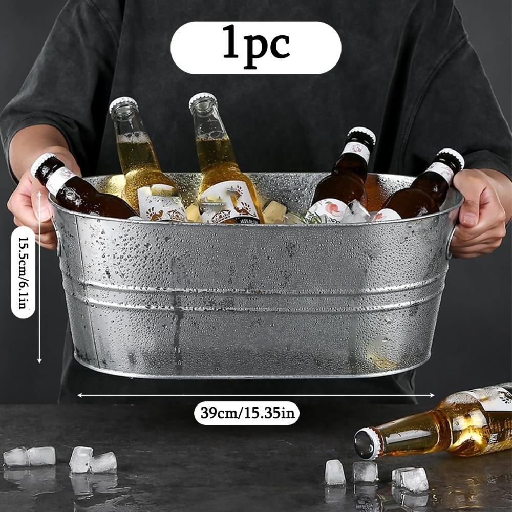 1pc Galvanized Tub Ice Bucket Large Metal Drink Buckets for Parties Beer Beverage Tub with Carry Handles for Champagne Cocktails Wine Cooling