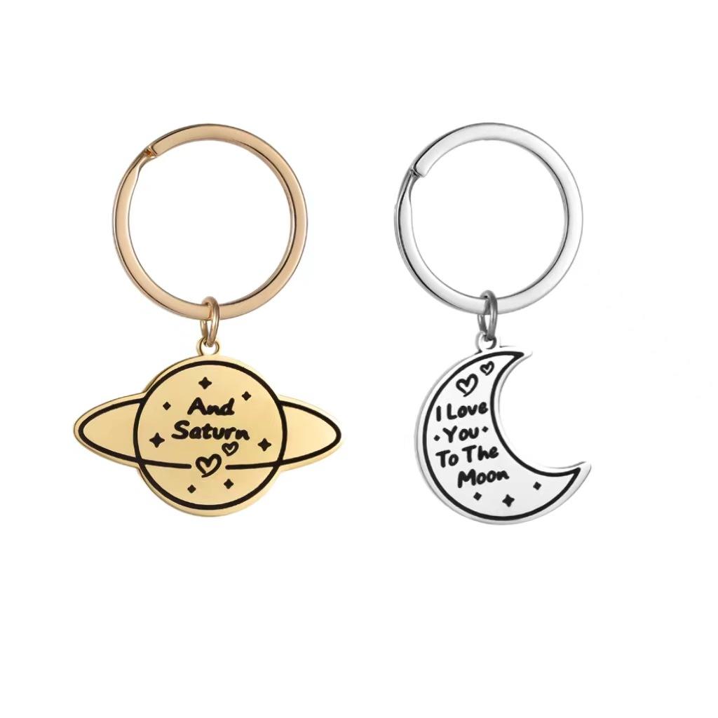 Planet Moon Stainless Steel Couple Keychain Romantic Universe Design Fashion Pendant Practical Valentine's Day Gift