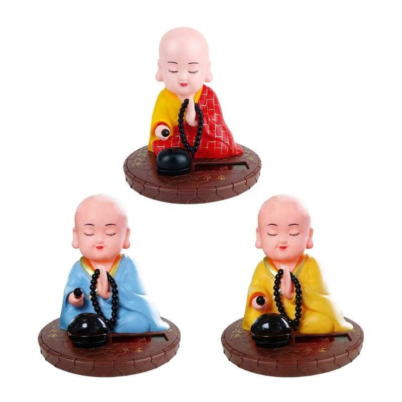 Shaking Monk Sculpture Solar Powered Car Decors Ceramic Decorative Figurine Symbolizing Fortune And Wisdoms