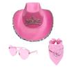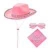 Trendy Western Style: Embrace the iconic cowgirl fashion with this coordinated set that combines traditional western elements with a fun, modern twist. The pink color scheme adds a playful and feminine touch to the classic cowboy hat and bandana, making it ideal for those who want to stand out in style.