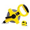 Strong waterproof nylon coated fiber tape measure with a portable ABS handle, featuring a reward 3 meter retractable steel ruler for versatile measurement solution in demanding environments.