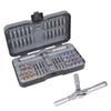 Featuring a detachable ergonomic handle made by heat treated aluminum alloy for lightweight durability, it includes 50 chromes molybdenums steel bits with color coded rings and a magnetic extension sleeve for secure bit retention and easy identification.