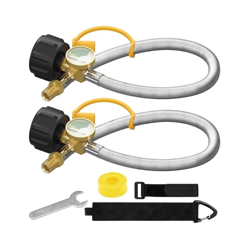 2pcs Stainless Steel Car Propanes Hoses with Integrated Pressure Meter for Accurate Gas Monitoring During Outdoor Use