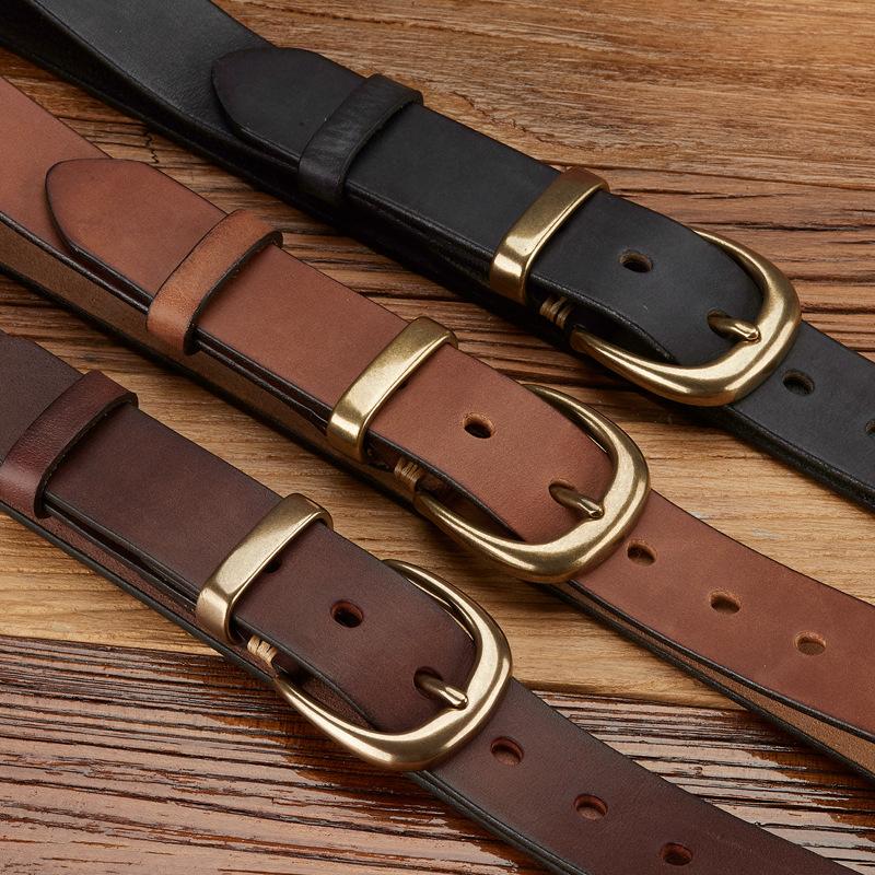 Retro Leather First Layer Cowhide Belt, Old Polished Men'S Jeans Belt, Middle-Aged And Young Casual Versatile Belt