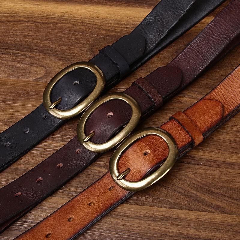 3.3Cm Wide Retro Unisex Leather Belt Simple And Versatile Couple First-Layer Cowhide Jeans Belt Men