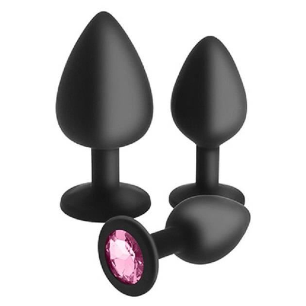 Plug anal - PLEASURES - Lot de 3 plugs anaux - Cristal - Différentes pierres colorées - Discret