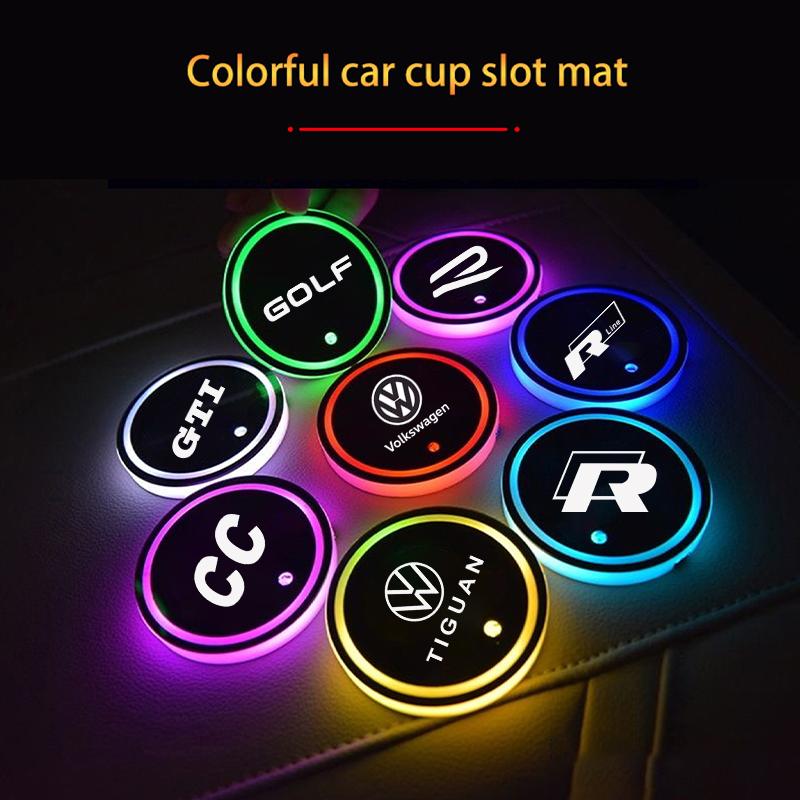 2026 Hot For VW VOLKSWAGEN Color Luminous Car Water Cup Coaster Holder Car Led Atmosphere Light For Volkswagen Golf Polo Passat
