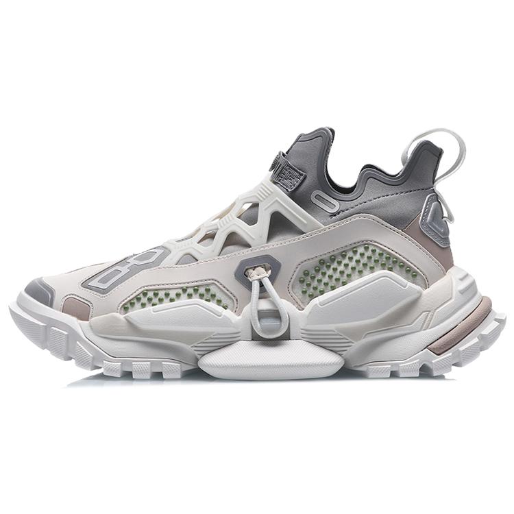 Li Ning Rekindled Comfortable Slip Resistant, Abrasion Resistant, Lightweight Low top Chunky Sneakers Unisex White Gray AGBQ102-1