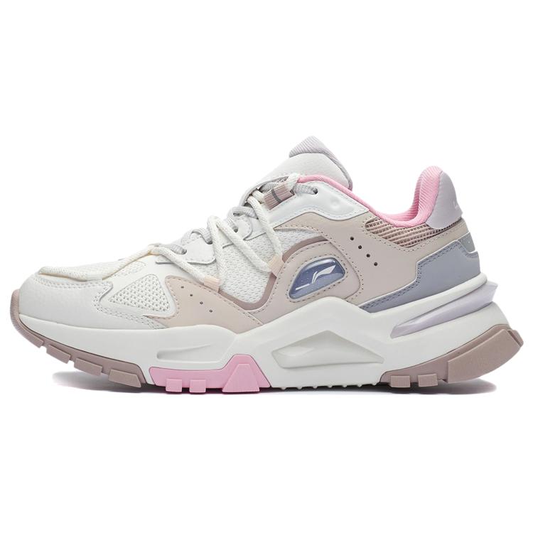Li Ning Reverse Fantasy Leather, Textile Low top Sports Casual Shoes Women's Pink White AGLR184-2