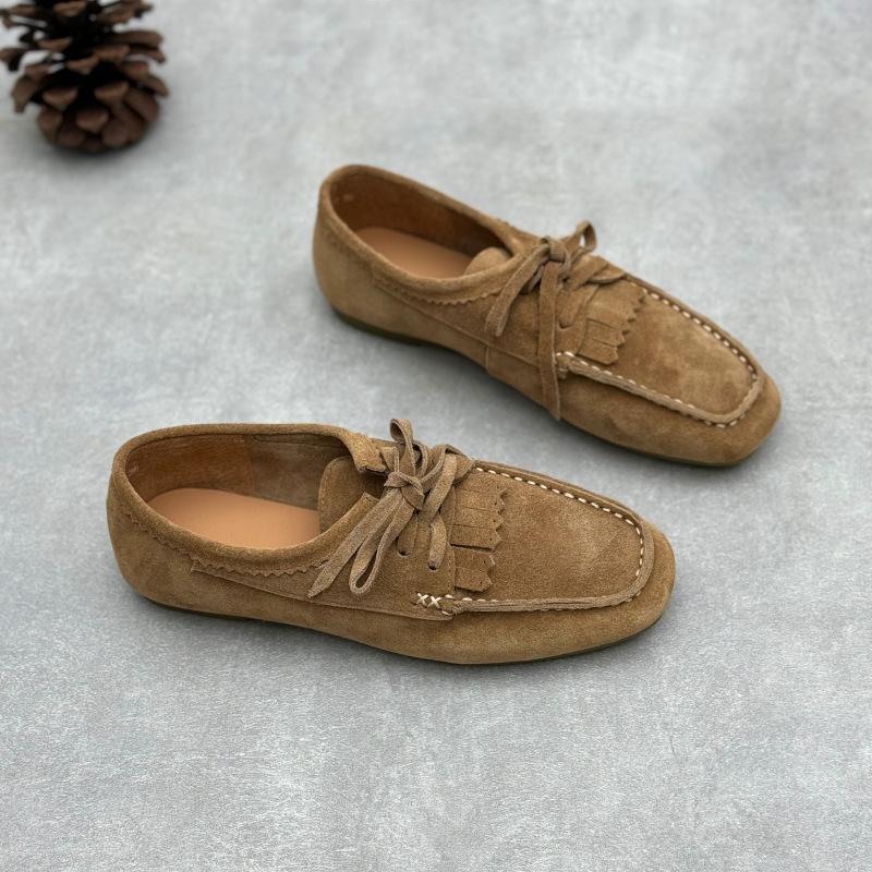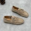 Ručně vyráběné dámské mokasíny z hovězí semišové kůže Čtvercový špička Ploché boty pro ženy Pohodlné Nízký nárt Měkká podrážka Dámské mokasíny