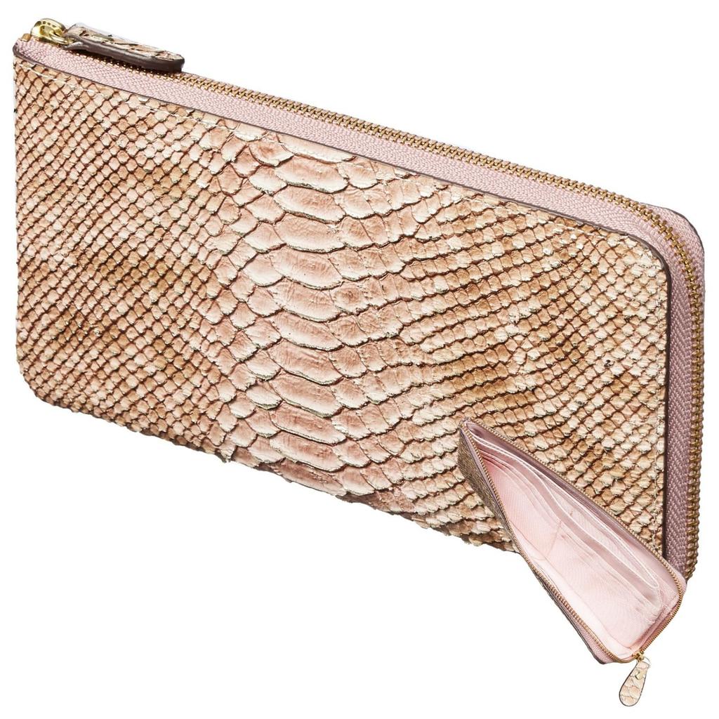 [VOICE] Align Anaconda Diamantina Women's Slim L-Shaped Zipper Long Wallet, Made with Italian Atema Leather. Features an Elegant Python Embossed