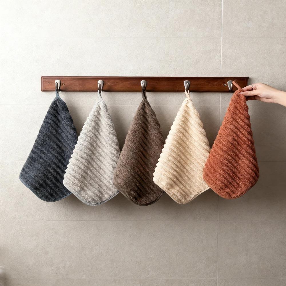 6 Piece Absorbent Coral Fleece Square Hand Towel Stripe Cleaning Cloth Practical Kitchen Towel Home
