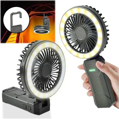 Moderní dobíjecí stolní přenosný malý kempingový ventilátor s oběhovým bezdrátovým stropním ventilátorem s LED světlem