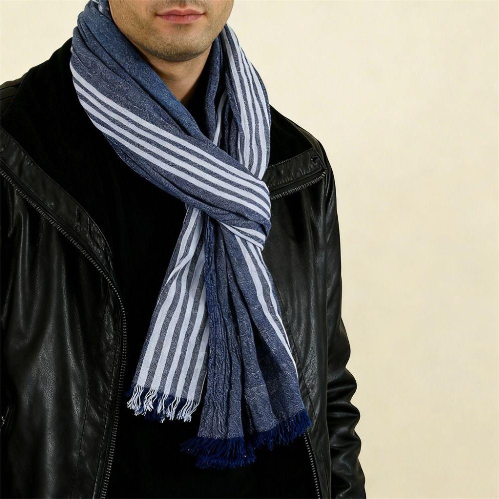 Cotton Linen Yarn-dyed Winter Men's Scarf Tassel Neckerchief Wrap Autumn Winter Warm