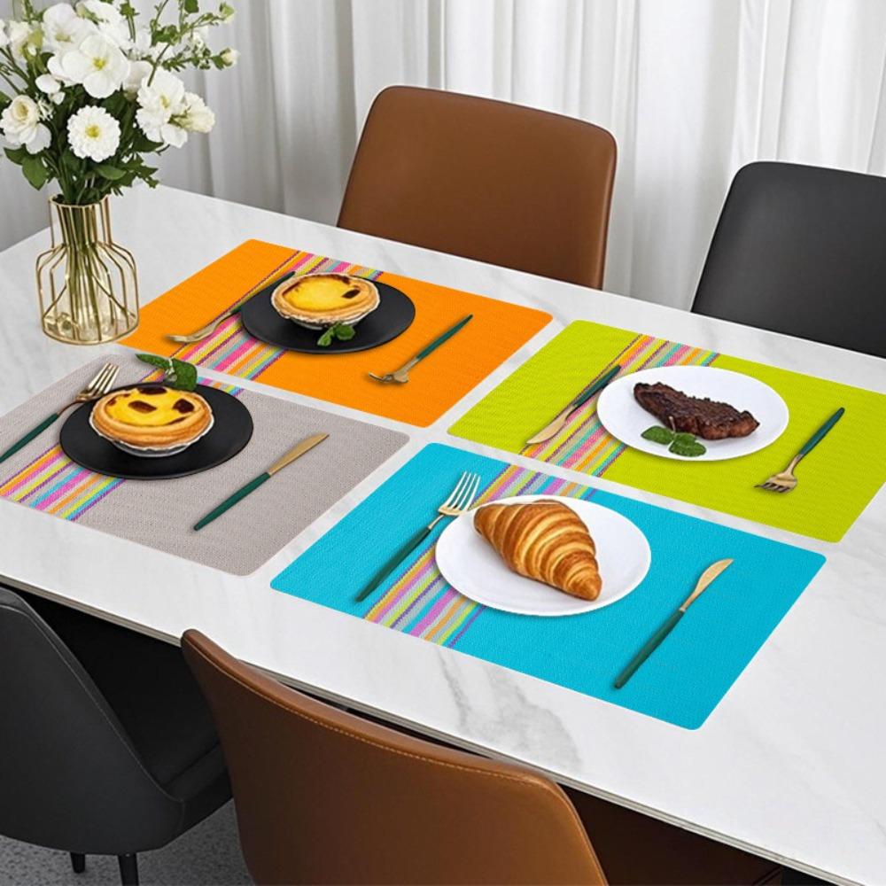 6 Pieces Waterproof Insulated Plate Mat PVC Place Mats Colorful Strip Table Mat Dining Table