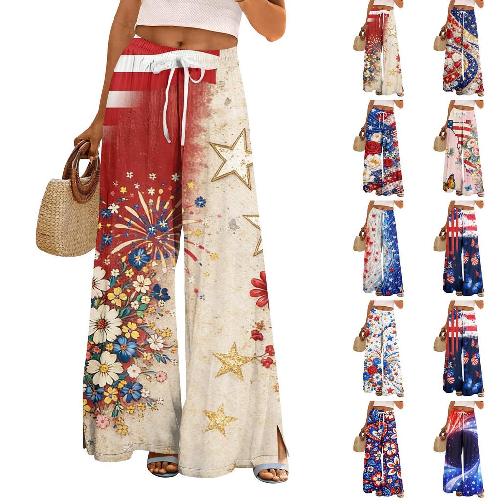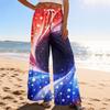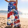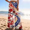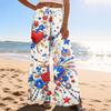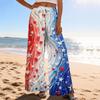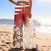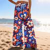 Dámské letní boho palazzo kalhoty s vysokým pasem a širokými nohavicemi, tisk, ležérní kalhoty s kapsami