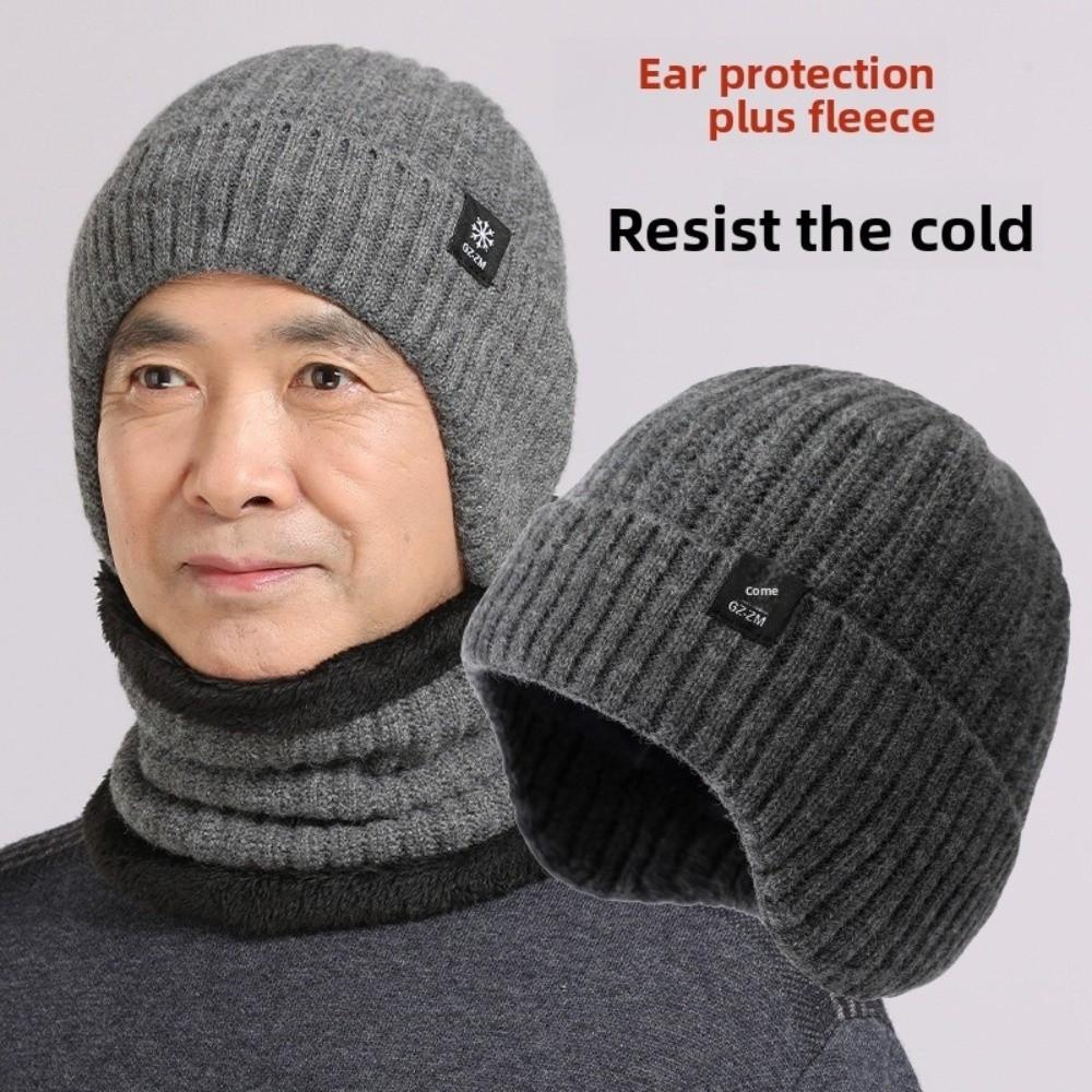 Thick Hat Scarf Set Plush Ear Protection Hat Simple Knitted Beanie Hat Riding