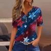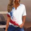 Women's T Shirt Independence Day Print Button Short Sleeve Daily Weekend Fashion Basic V- Neck Regular Top