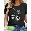 Cherry Skull Print Plus Size Women's Round Neck Spring/Summer T-Shirt