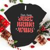 Dear Santa JUST BRING WINE Graphic Print Plus Size Women's T-shirt, Short Sleeve Crew Neck Casual Top for Summer & Spring