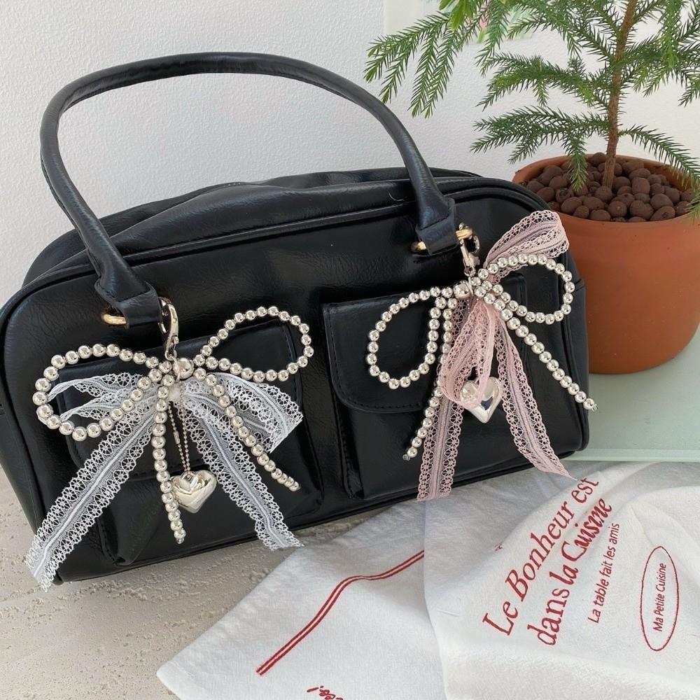 Punk Lace Bowknot Keychain Imitation Pearls Key Chain Ornament Exquisite Pearls Keychain Daily Use