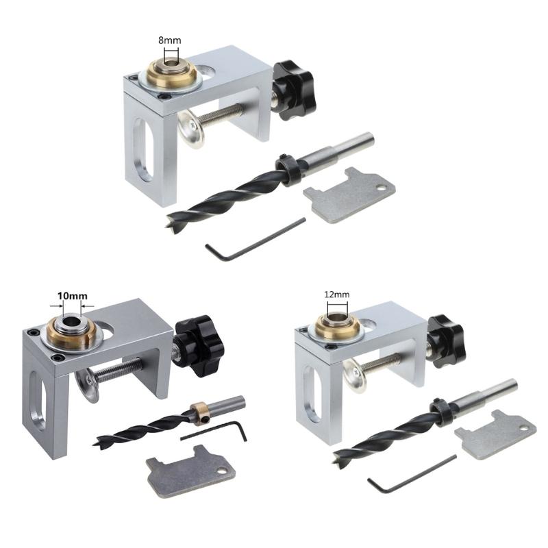 2 In 1 Dowel Jig Woodworking Hole Drill Punch Positioner Guide Locator Cabinet Screws Punch Locator Kit 8/10/12mm Sleeve