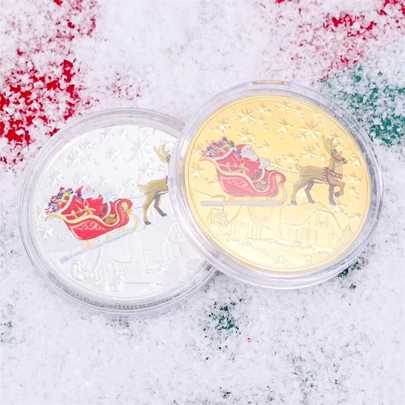 1Pcs Merry Christmas Plated Gold Coin Santa Claus Colorful Star Snow Collectible Coins Christmas Souvenirs