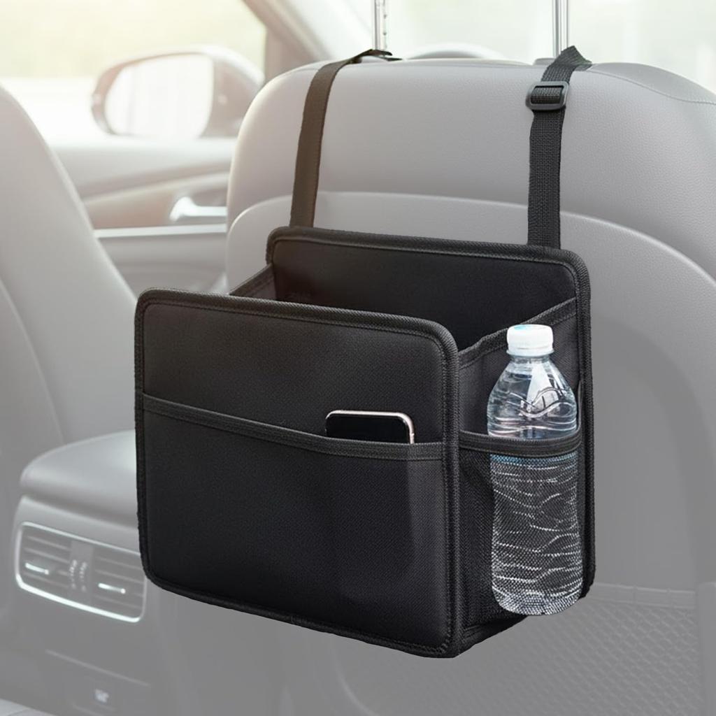 🚗 [No Tools Required, Compatible with Multiple Vehicles] Easy installation by simply attaching the strap to the headrest. The adjustable length makes it compatible with a wide range of vehicles, from compact cars to SUVs and minivans. Its multifunctional design allows it to be used as a storage container, trash can, and drink holder.