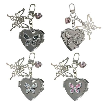 Přívěšek na klíče ve tvaru sladkého srdce Butterfly se skládacím zrcadlem Y2K Trendy kovový přívěsek na klíče Klíčenka do auta Taška s přívěskem Dekorace pro dívku Dárek
