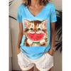 Summer Women's T Shirt Graphic Animal Cat Cute Stylish Casual Short Sleeve V Neck Regular Tops Daily 3D Printed Y2K Tees