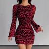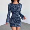 Kawaii Dívčí Módní Topy Studentské Kreslené Ležérní Dámské Oblečení Šaty s Dlouhým Rukávem Leopardí Vzor Síťovina Elegantní Sexy pro Ženy