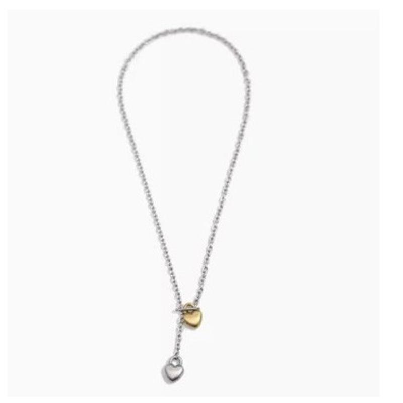 Fashionable Double Heart Pendant Necklace OT Buckle Sweater Chain Adjustable Length Neckchain Accessory for Daily Wear