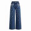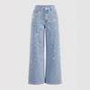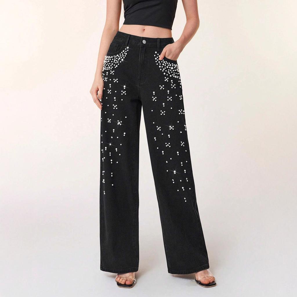 New fashion trend casual loose and thin jeans women's beaded straight trousers